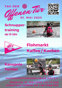 Am 1. Mai 2023 laden die Wassersportfreunde Liblar (WSF) ab 10 Uhr zu einem Tag der offenen Tür ein. Besucherinnen und Besucher können beim Kanupolospielen zuschauen, über einen Flohmarkt bummeln und Kaffee und Kuchen sowie kalte Getränke genießen. Von 13 bis 15 Uhr gibt es ein Schnuppertraining im Kanupolo für Kinder. Für die Teilnahme ist das Schwimmabzeichen in Bronze Voraussetzung, außerdem sollten Interessierte Badehose und Handtuch mitbringen.