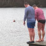 Bei frühlingshaften 17 Grad Lufttemperatur könnte man meinen, dass es doch ein Leichtes sei, mal eben ein Bad im See zu nehmen. Doch dieser hatte gerade einmal 5,8 Grad. Es gehört schon jede Menge Überwindung dazu, bei solchen Temperaturen ins Wasser zu steigen. Am Ende hat aber niemand gekniffen – von wenigen Sekunden bis zehn Minuten Durchhalten war alles dabei.