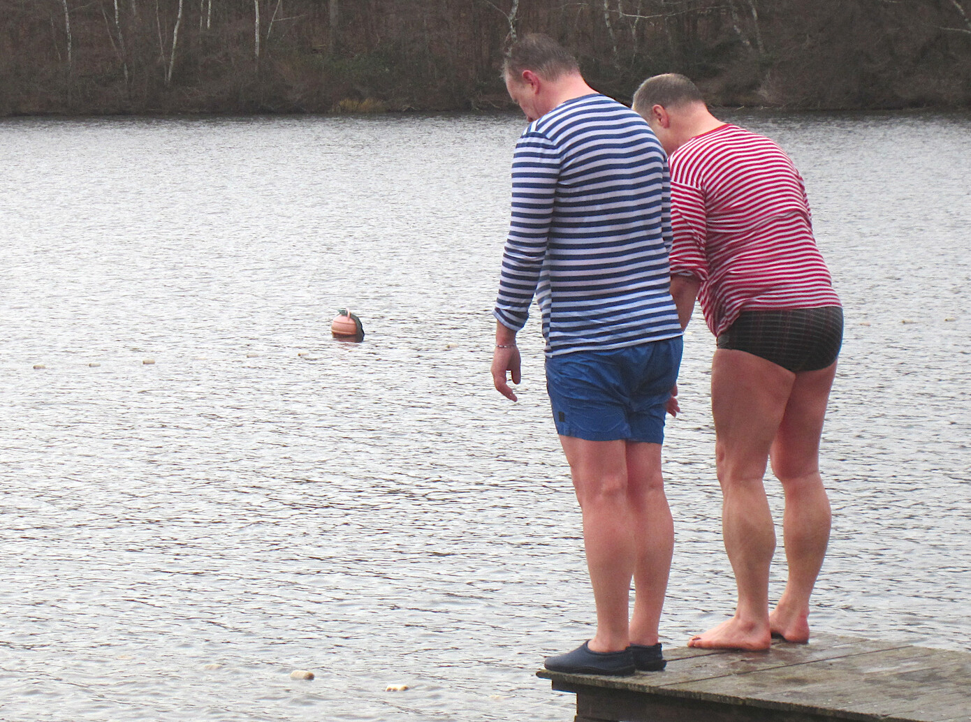 Bei frühlingshaften 17 Grad Lufttemperatur könnte man meinen, dass es doch ein Leichtes sei, mal eben ein Bad im See zu nehmen. Doch dieser hatte gerade einmal 5,8 Grad. Es gehört schon jede Menge Überwindung dazu, bei solchen Temperaturen ins Wasser zu steigen. Am Ende hat aber niemand gekniffen – von wenigen Sekunden bis zehn Minuten Durchhalten war alles dabei.