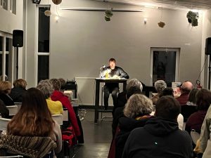 Der Mainzer Autor Ingo Bartsch stellte am 27. Februar seinen Krimi »Ein Mord, drei Tote« sowie weitere Kurzgeschichten vor. Rund vierzig Vereinsmitglieder und Gäste waren der Einladung gefolgt und lauschten der kurzweiligen Lesung. Der Abend wurde durch die WSF in Kooperation mit der Liblarer Buchhandlung Köhl organisiert, die sich über einen Abend in dieser ungewöhnlichen Lesungskulisse genauso freute wie der Autor selbst. Alle waren sich einig – das ist eine Wiederholung wert!